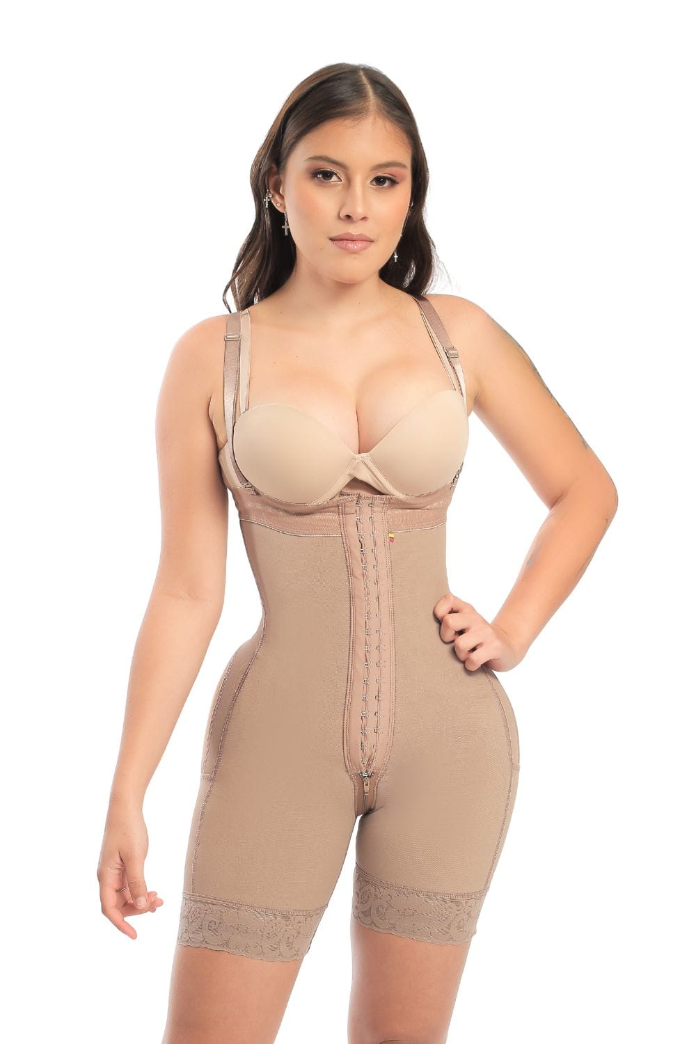 Ofrece una solución versátil y completa para moldear tu figura. Diseñada como un body tipo short que levanta glúteos, con tirantes removibles, cierre invisible y elástico suave, garantiza comodidad durante todo el día. El forro interno de elastano y forro externo de powernet suave proporciona compresión equilibrada sin marcar la piel.